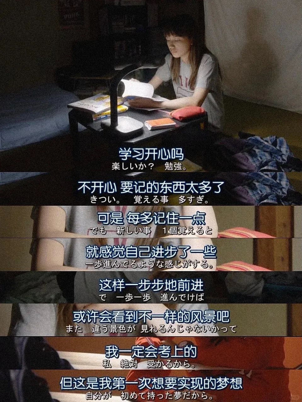一直激励我的一段话:"你考的不是试,是前途和暮年的欢喜,你桌面上的书本,是将来做选择时的意气和拒绝时的底气。"