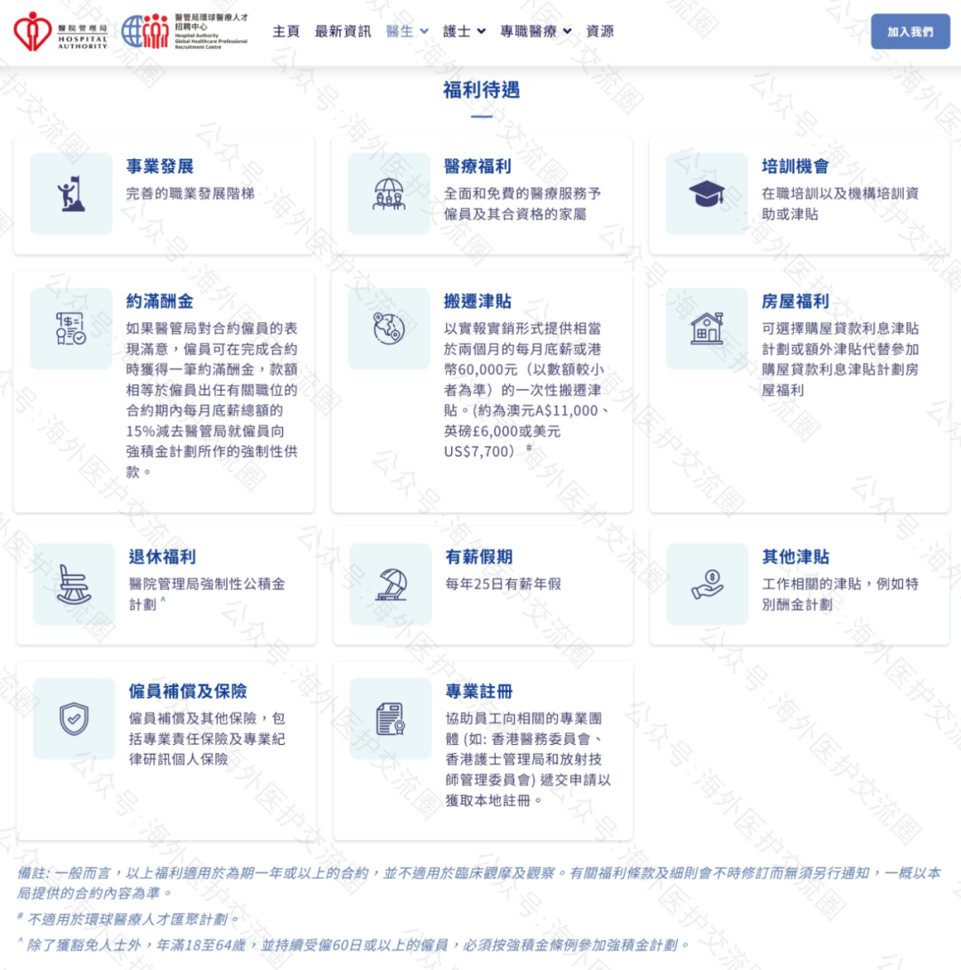 香港医生福利待遇详情(图源:医院管理局)