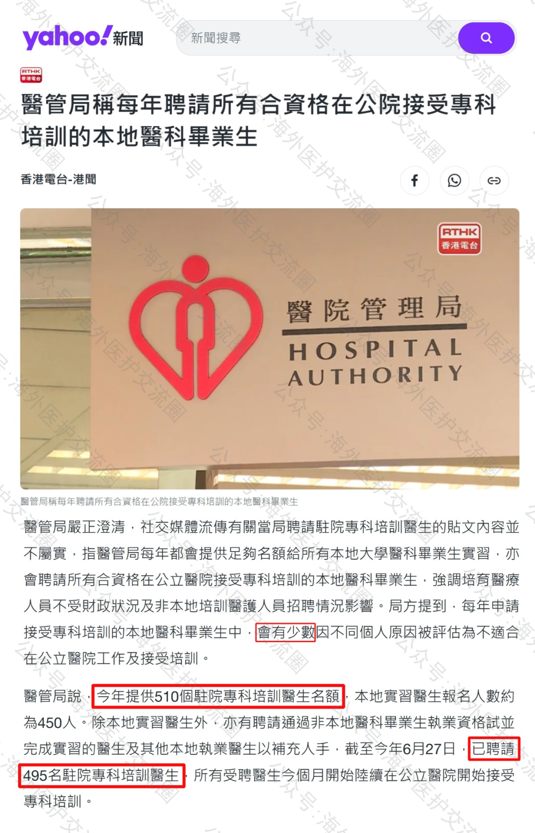但香港医管局已经明确说明:对通过LMCHK的医生,公立医院会提供培训岗位,不会因为财政问题或其他渠道招聘而受影响。