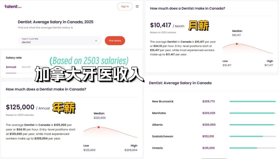 2025年加拿大牙医平均薪资(图片信息来源:Talent)