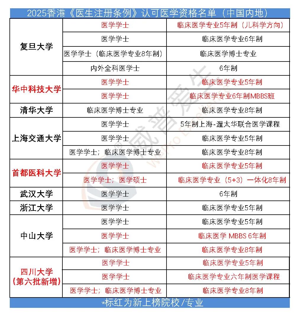 图源:申请特别注册的认可医学资格名单(更新至2025年6月30日)