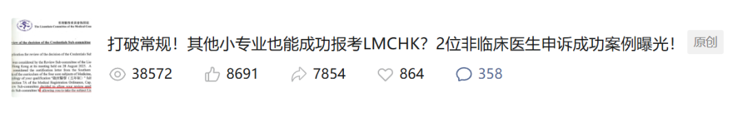 一位毕业于国内知名医学院八年制本博连读、但本科授予“非医学学位”的三甲临床医生,在LMCHK申请被拒后,通过威普爱生教育团队充分准备与专业上诉,成功取得考试资格。