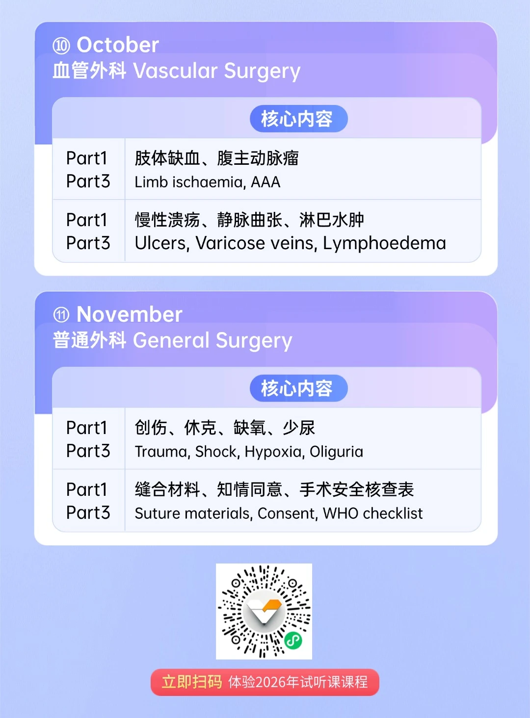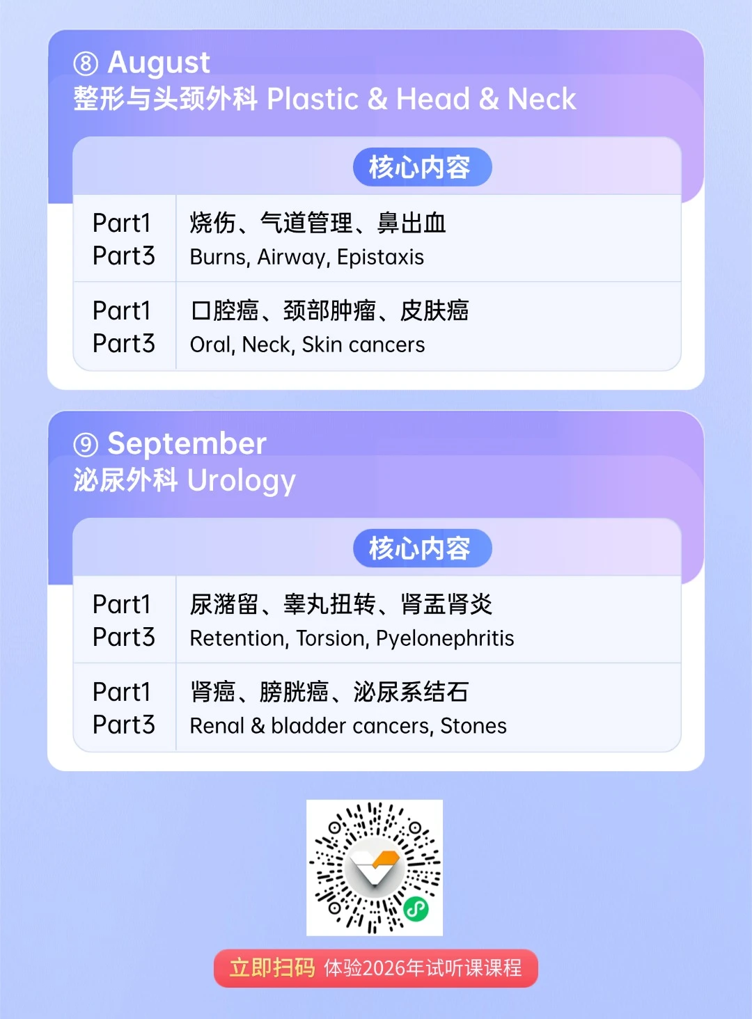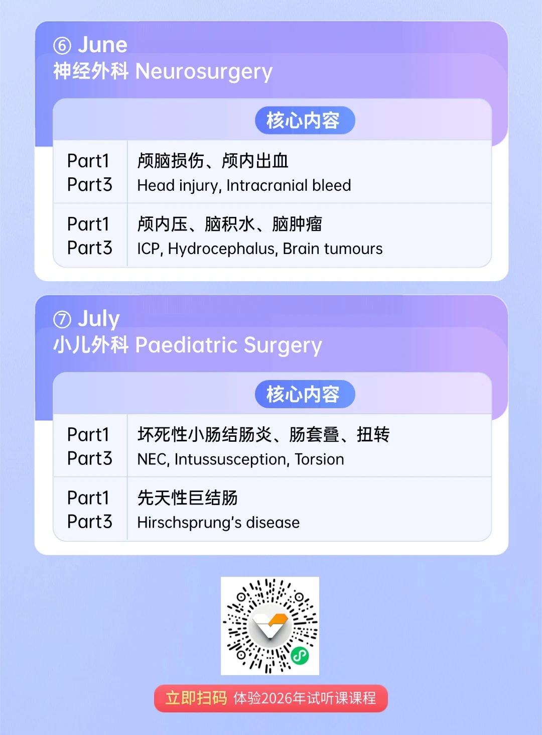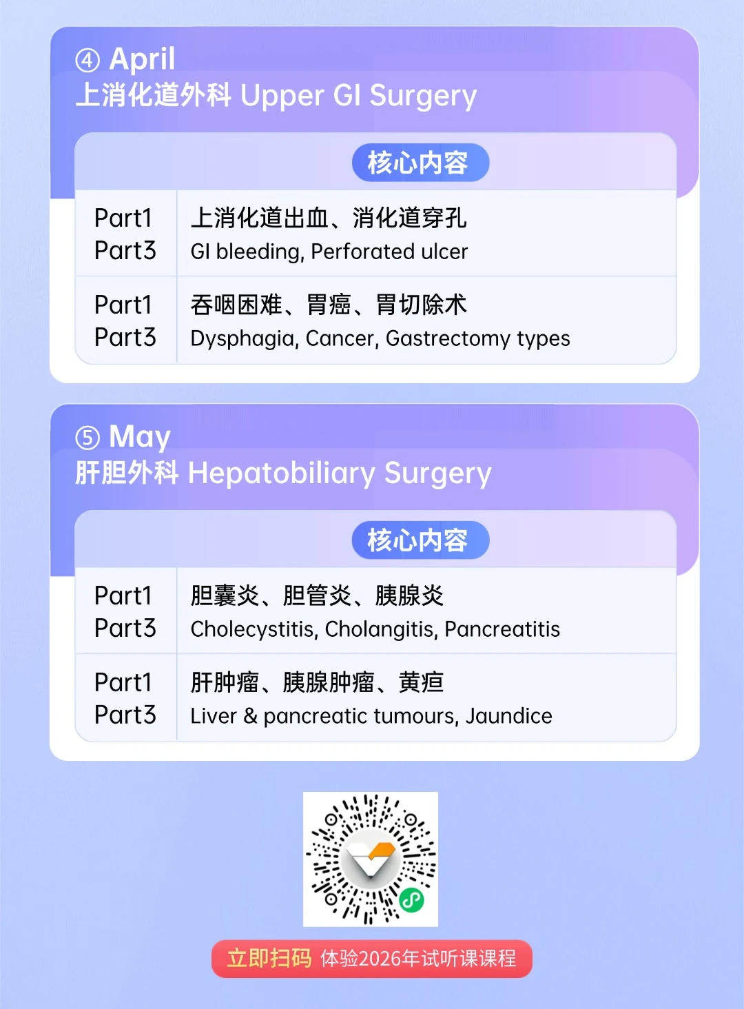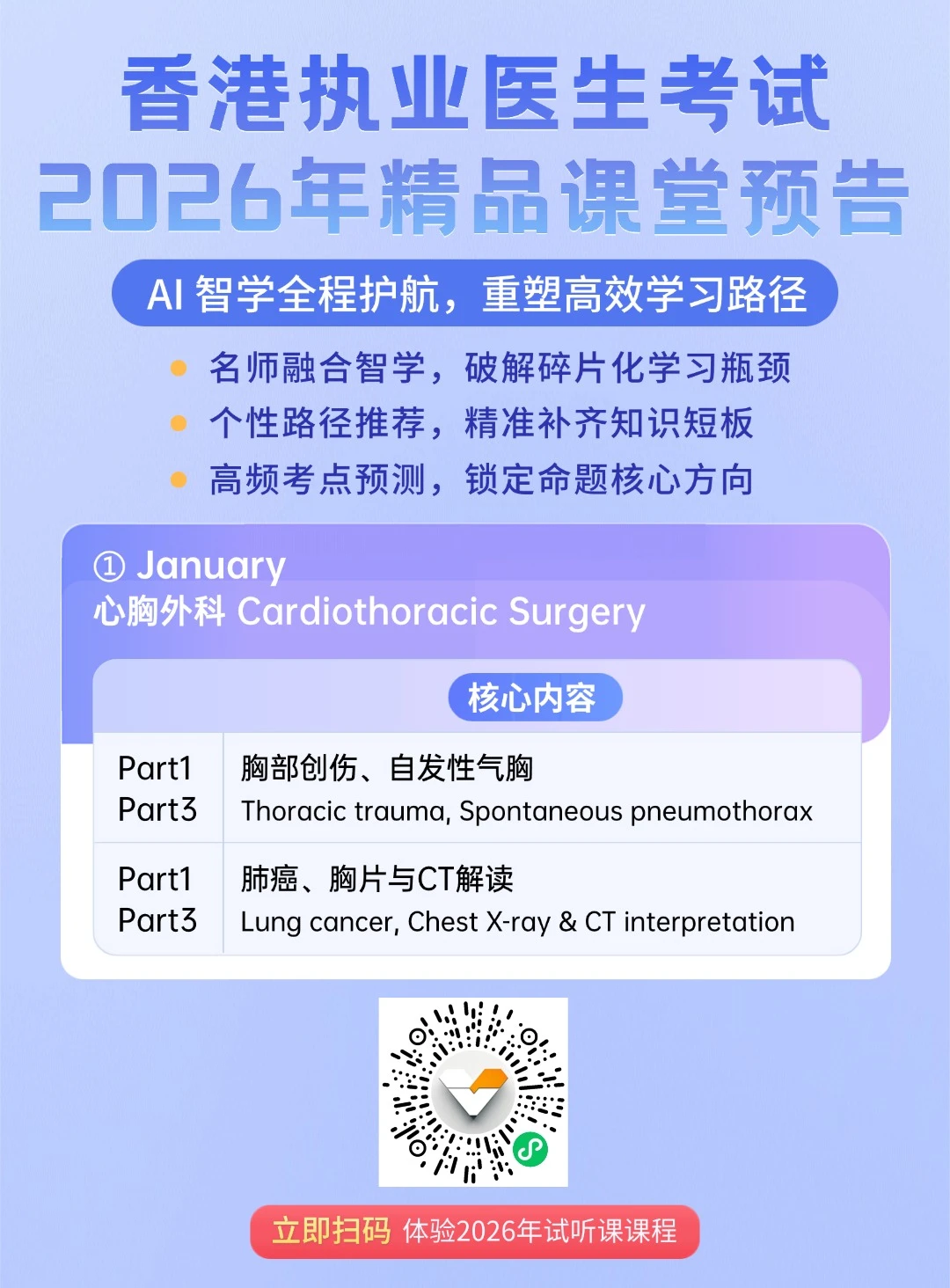 🩺强调临床场景下的判断逻辑,对应Part1与Part3的不同考查方式,减少重复覆盖,突出高频场景训练,课程并非以“覆盖越多越好”为目标,而是希望在有限时间内,💗帮助学员建立清晰的应试思路。