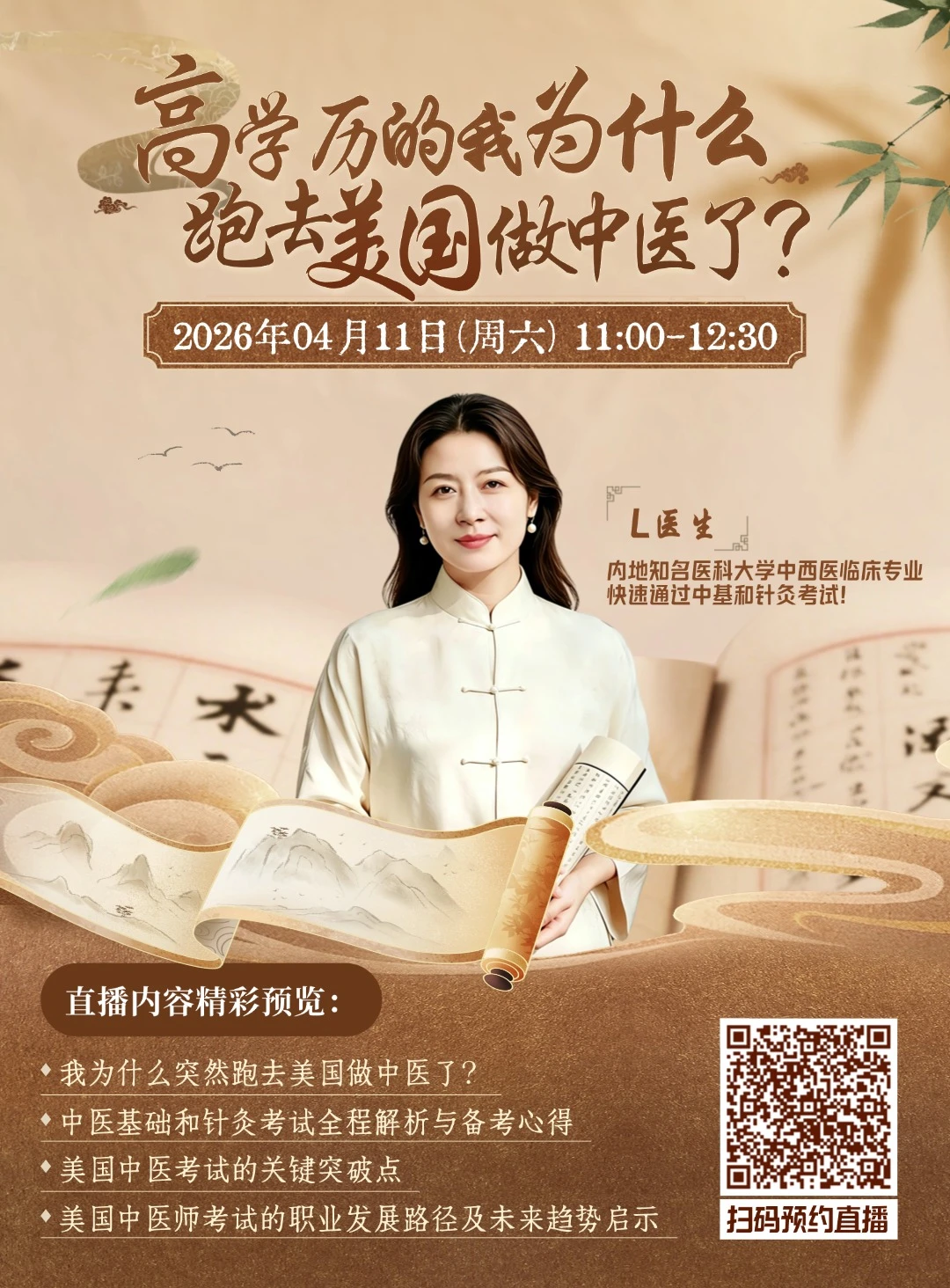 如果你正在考虑NCBAHM(NCCAOM)考试,或者还在犹豫要不要走中医出海这条路,这场直播,能帮你少踩很多坑!很多问题,靠查是查不明白的,但有人走过,你就能看懂。🙋🏻♀️来直播间,我们把这件事一次聊清楚。