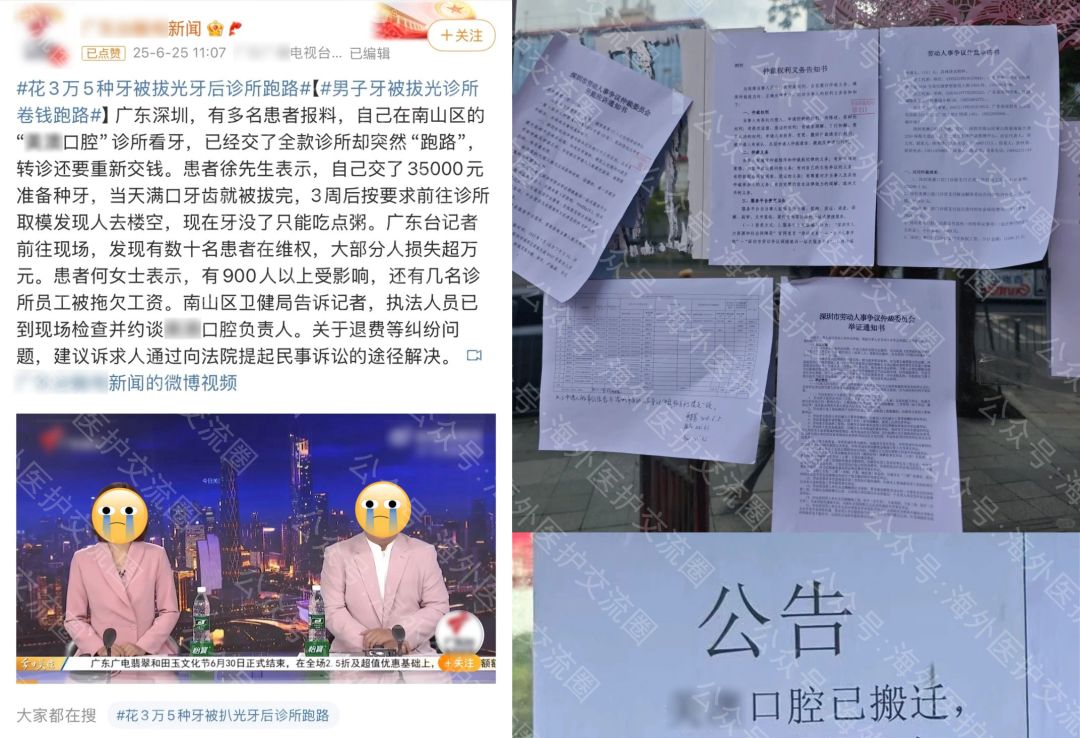 某知名口腔诊所跑路新闻(图片来源:新浪微博平台)