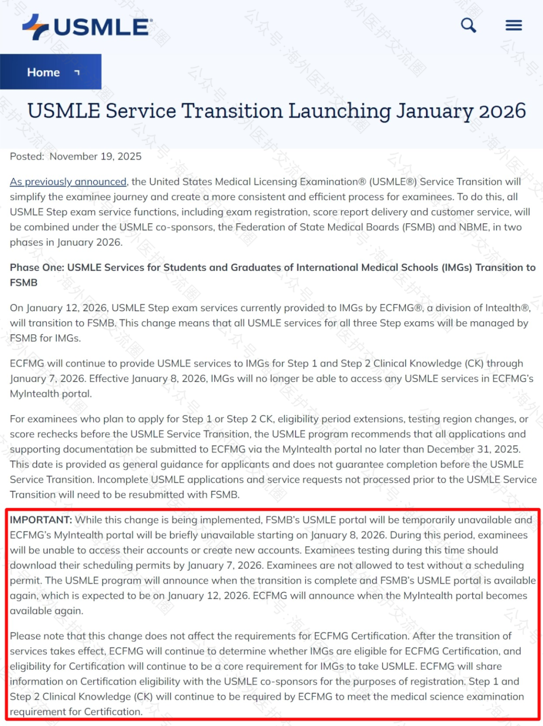 国际医学毕业生(IMG)的重点提醒(图源:USMLE官网)