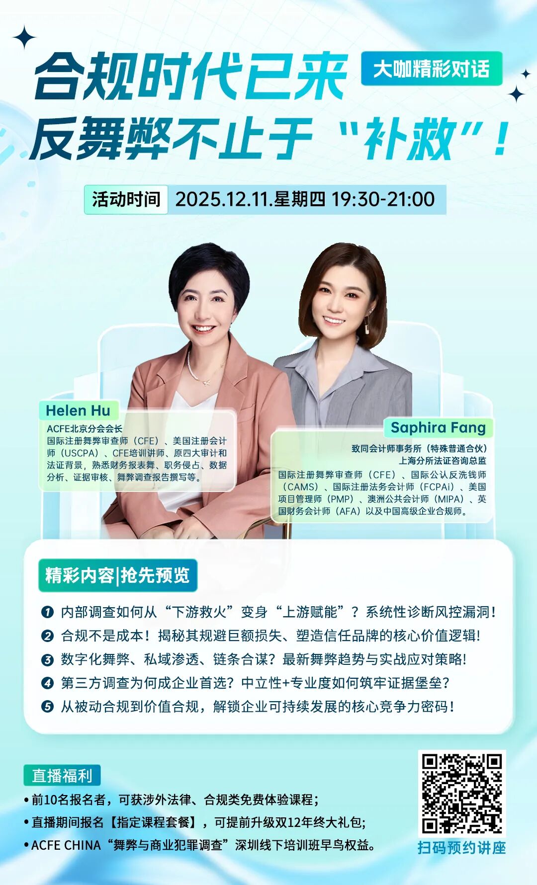 访谈有料 | 合规时代已来,反舞弊不止于“补救” 线上直播开始预约!