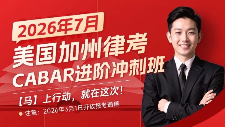 为了更好地应对2026年2月&7月美国加州律考CABAR,我们也上线了一系列直播课程(包含公开课及内部学员专属直播)目前Serena老师的USBAR美国律考系列直播持续更新中!