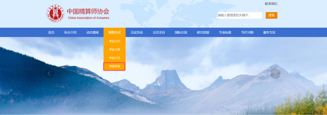1、进入中国精算师协会官网(https://www.e-caa.org.cn/),在“精算考试”栏目内选择相应"考试报名“;