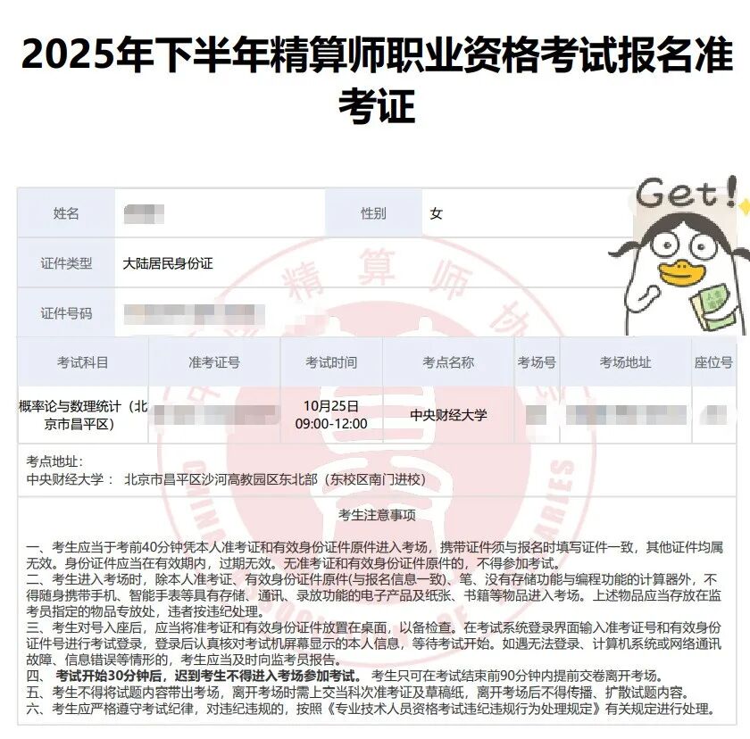 重要提醒:2025年下半年中国精算师考试准考证打印入口已经开通,打印开始时间为:2025年10月17日18:00