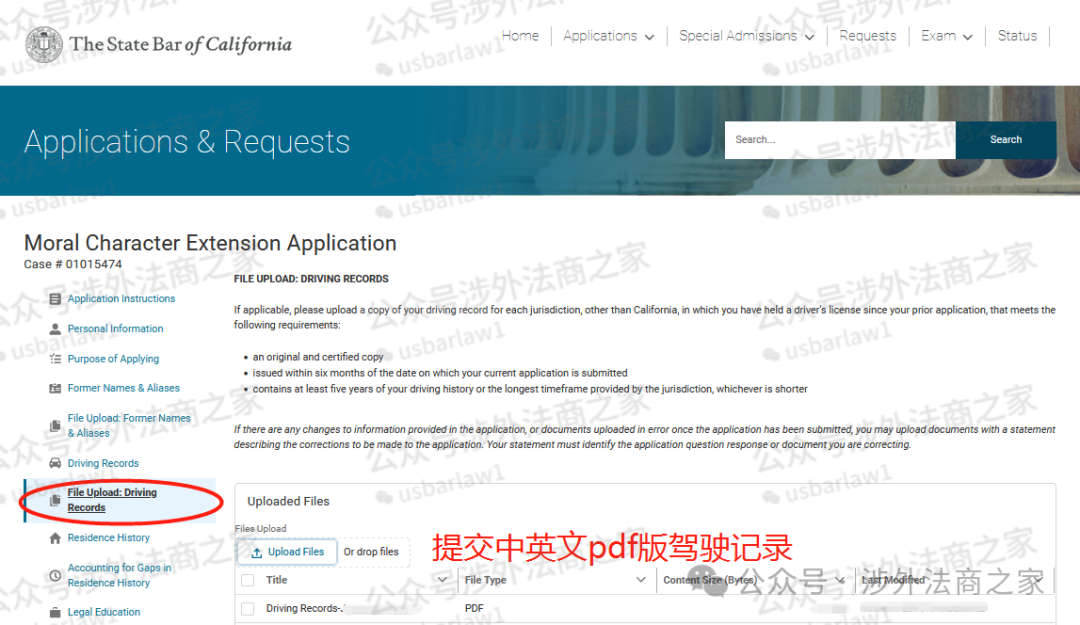 这部分的驾驶记录不需要寄送正本到加州律协,只需要上传扫描档案到线上申请即可。