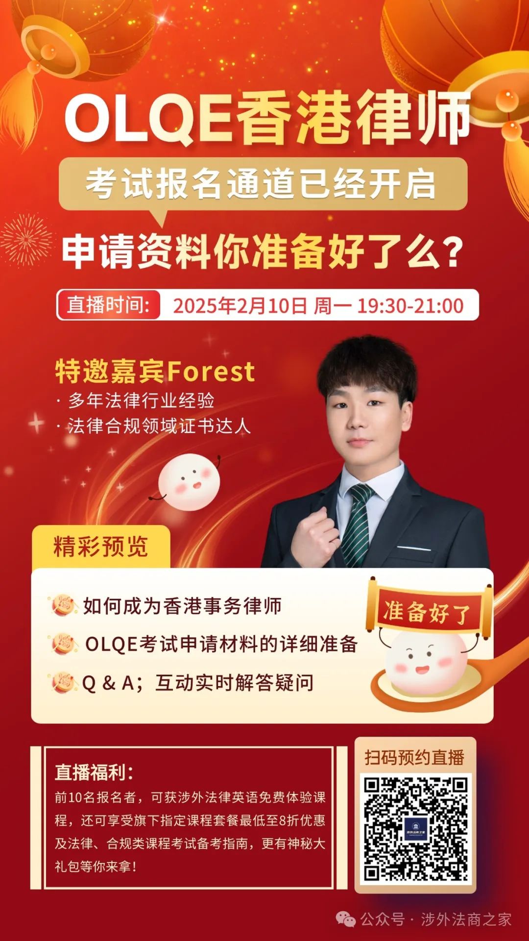 2025年2月美国加州律考CABAR即将到来,我们也上线了一系列直播课程(包含公开课及内部学员专属直播)目前Serena老师的USBAR美国律考系列直播持续更新中!请持续关注【涉外法商之家】公众号获取最新直播资讯!错过先前直播的小伙伴可扫码观看回放