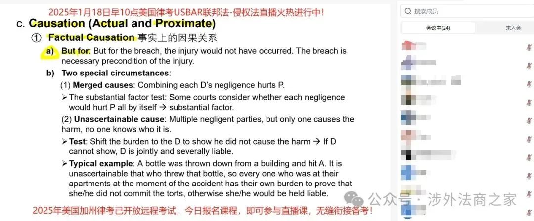 为了更好地应对美国加州律考CABAR,我们也上线了一系列直播课程(包含公开课及内部学员专属直播)目前Serena老师的USBAR美国律考系列直播持续更新中!
