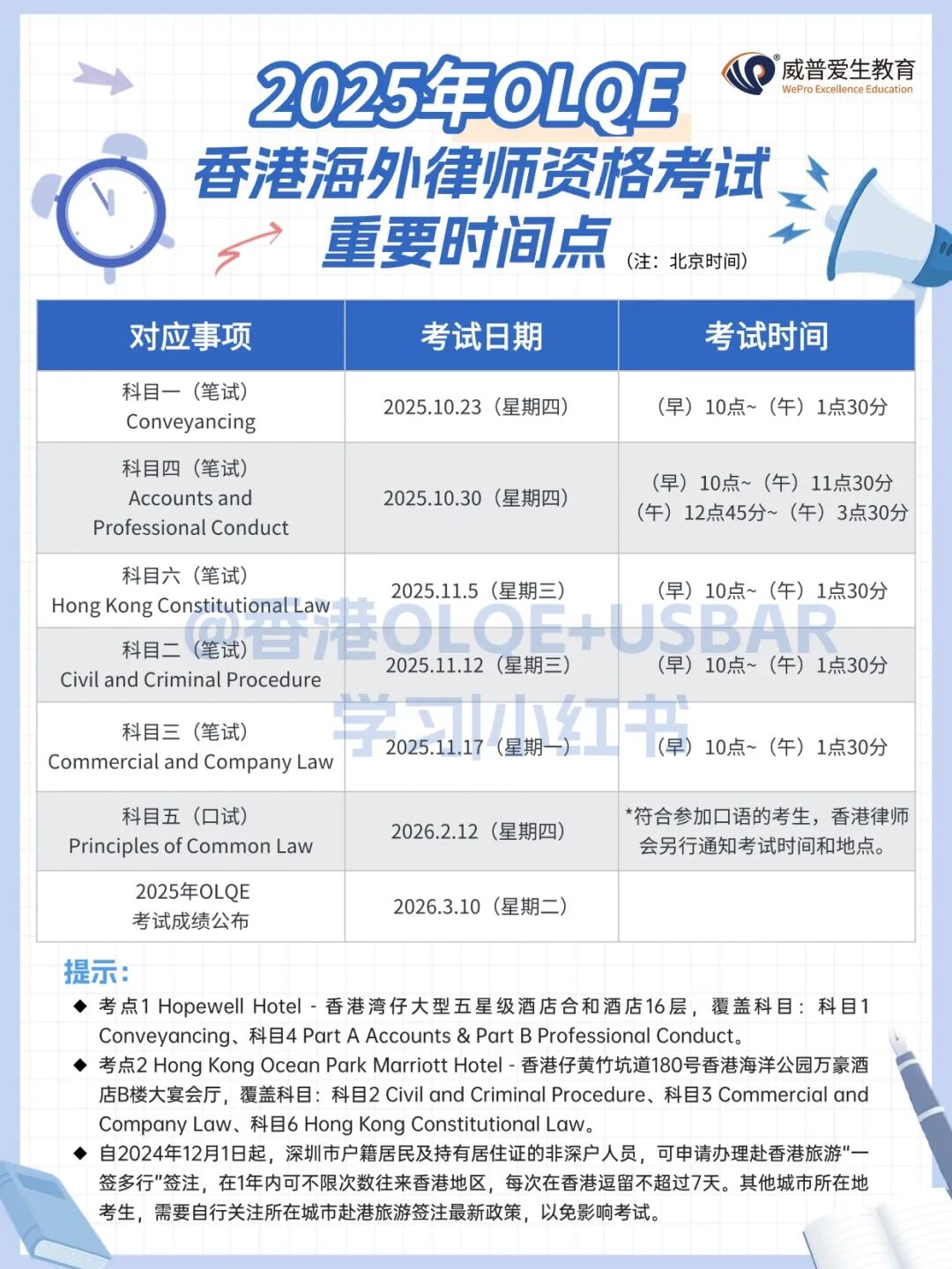 以下是小律替大家整理的2025年香港OLQE考试时间安排表,需要可以收藏()