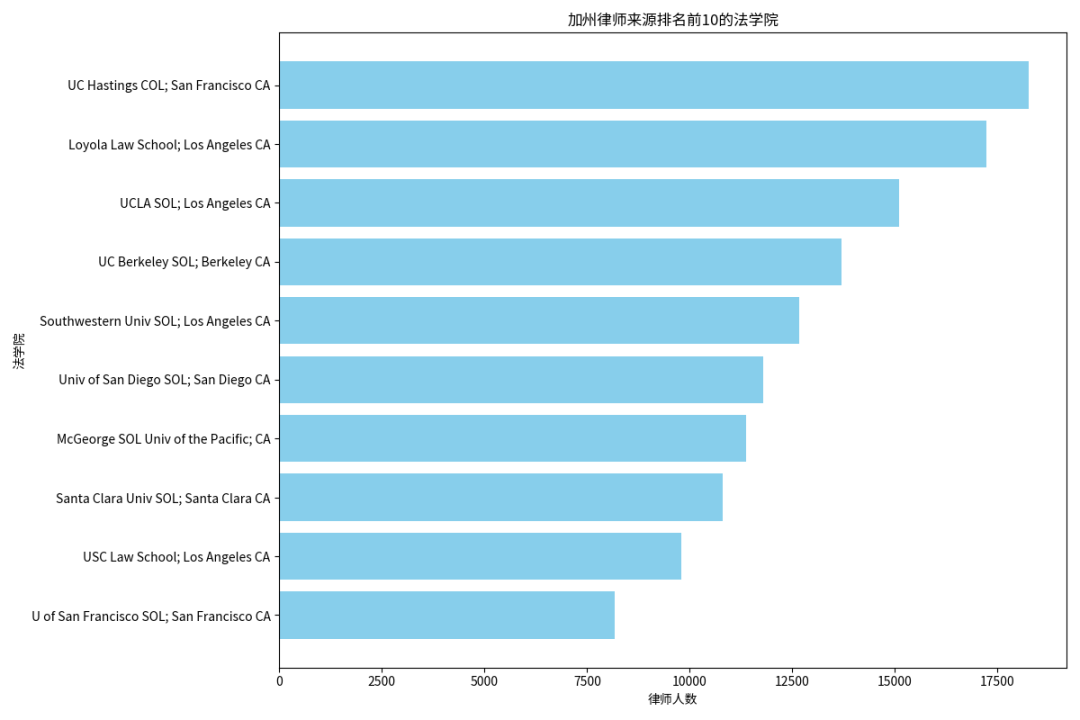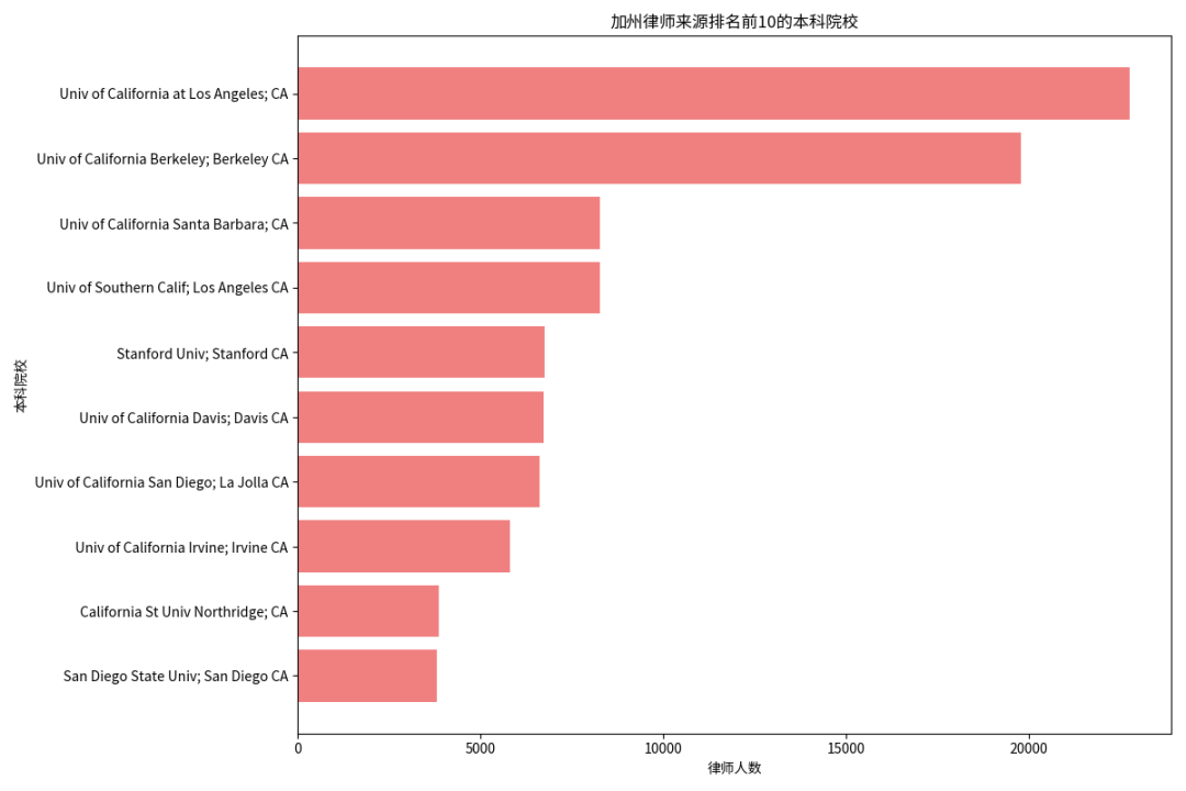 本科院校的分布进一步强调了加州大学系统在培养法律人才方面的基础性作用。