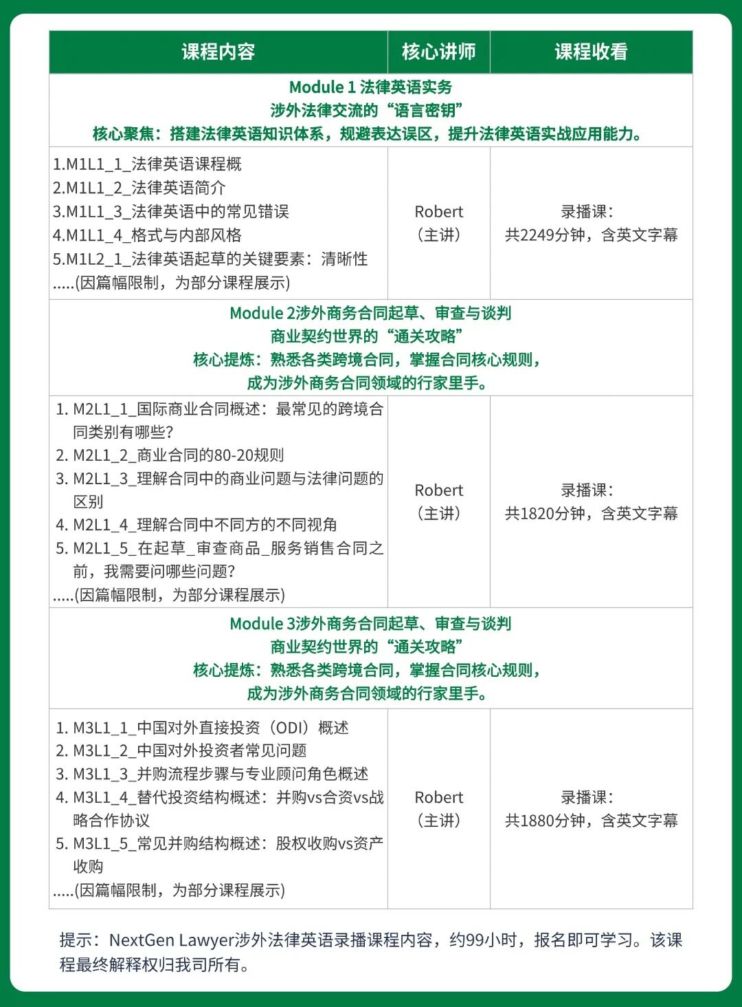 ✔全套NextGenLawyer涉外法律英语录播课(价值8700元);