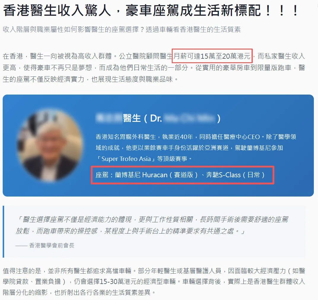 对比国内医疗环境,香港的医疗体系对医生的待遇显然更具竞争力。