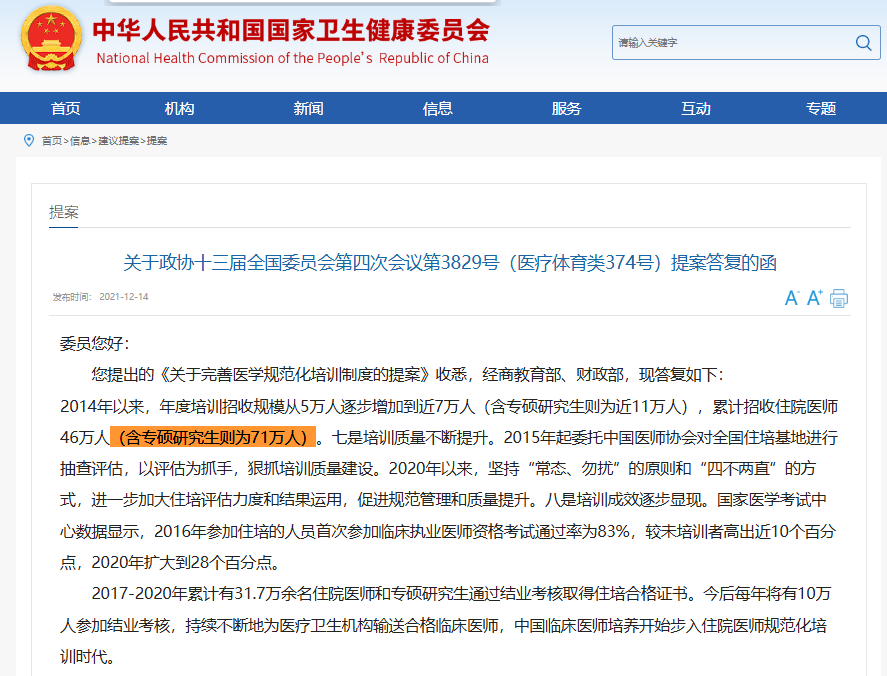 与此同时,住院医师规范化培训制度在全国推广。公开报道显示,全国规培医生人数已经超过70万人。