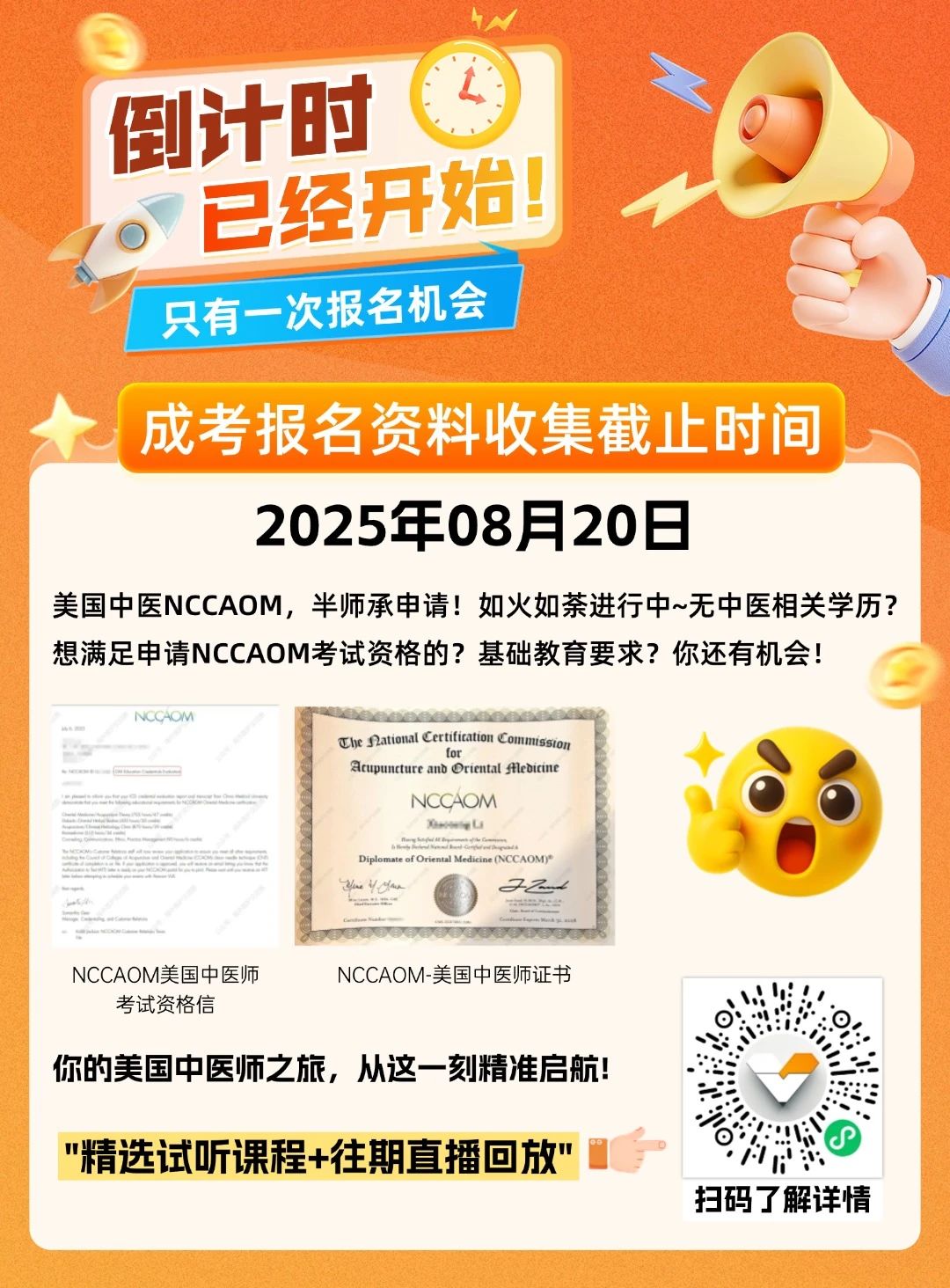 近两年,美国中医执业考试(NCCAOM)的报考门槛正在收紧。