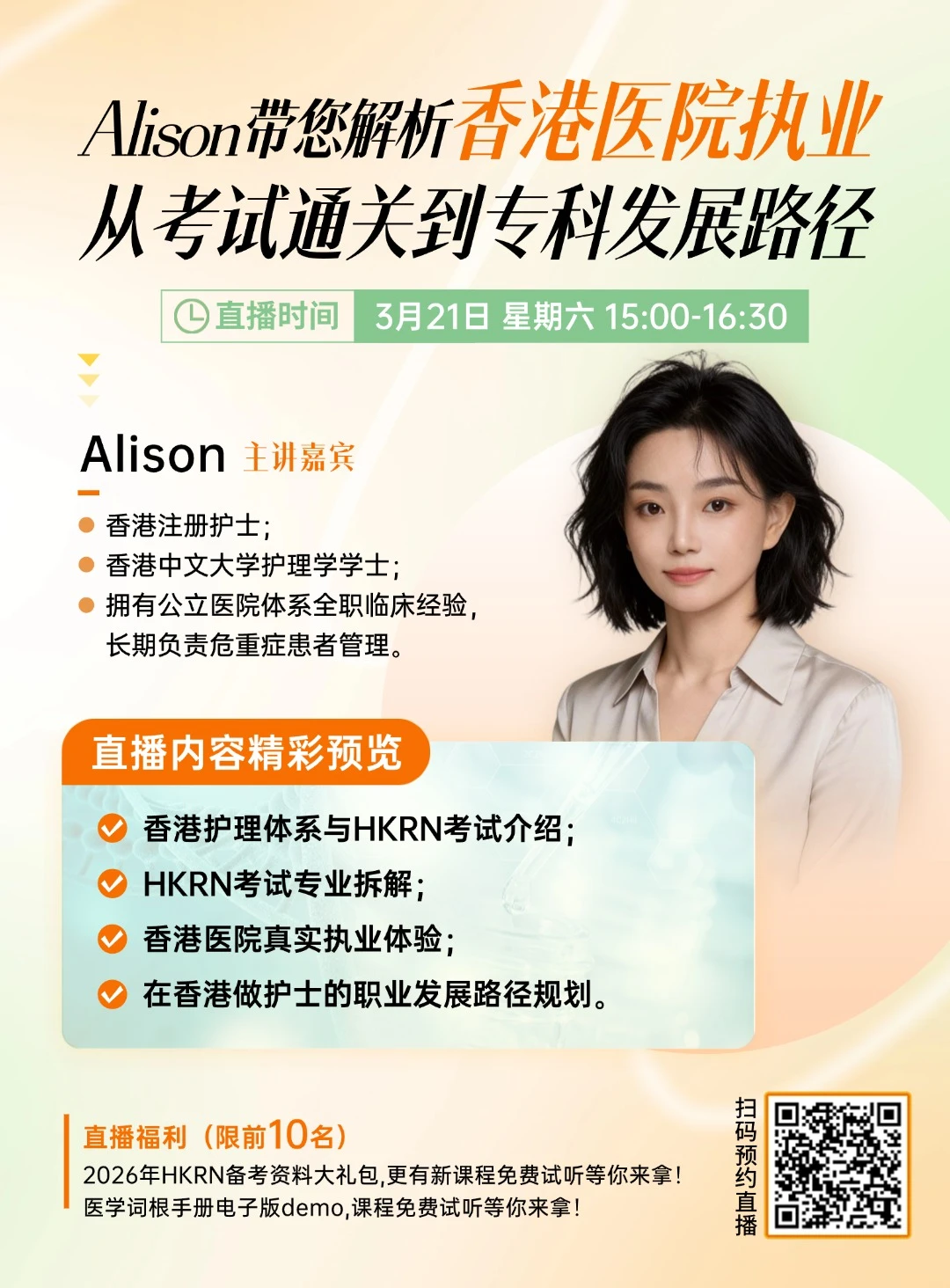 这场直播,我们不讲零散信息,把「香港护理→HKRN考试→医院执业→职业发展」这一整条路径,帮你系统拆清楚。