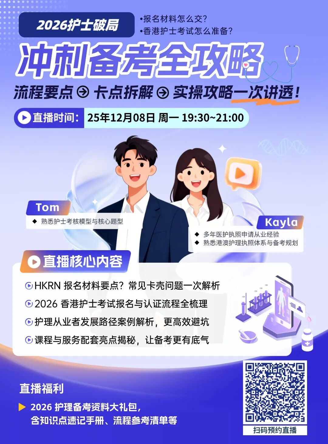 这次,我们会把HKRN报名与考试流程掰开讲清楚:从报名材料怎么准备、常见卡点在哪儿、审核到底看什么,到2026流程变化、备考策略、路径选择、案例拆解……每一步都讲得足够细,让你听完就能立刻知道怎么做。