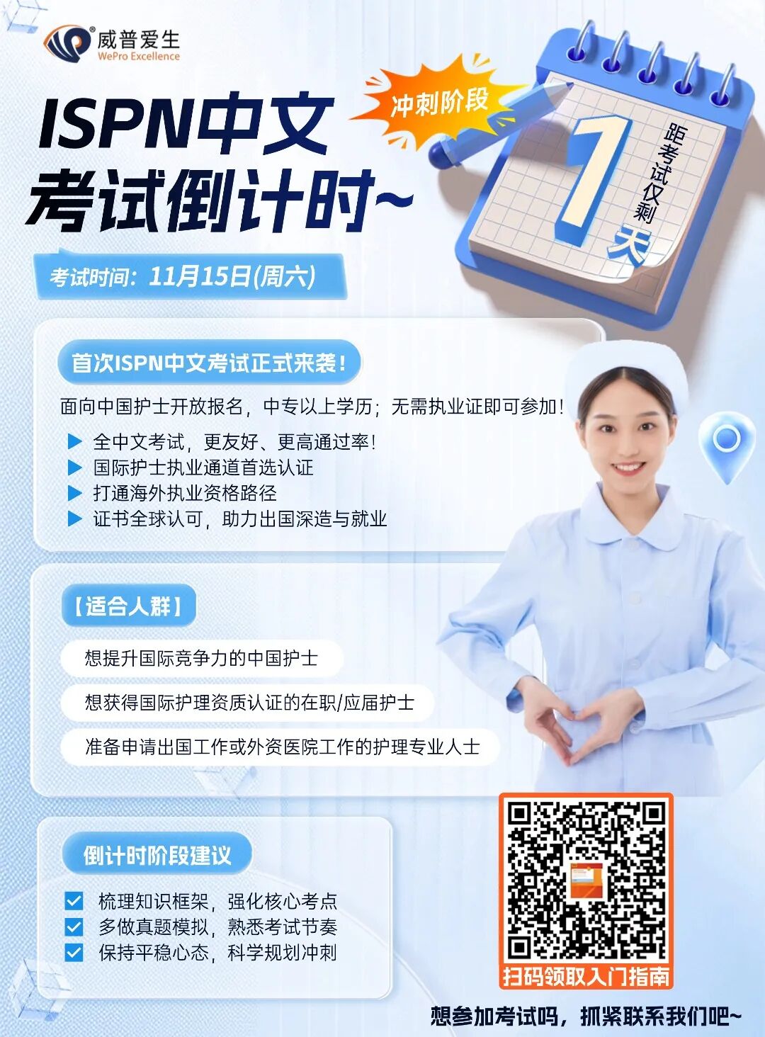 对于还在读书或刚毕业、想提前了解国际标准的同学来说,这场考试是一个不错的起点。它不仅能帮助你更早接触国际护理体系,了解海外护士的执业要求,还能让你在求职或继续深造时多一份竞争力。与其等工作几年后再起步,不如趁现在积累经验、提前布局未来。