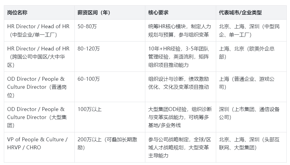 猎聘数据显示,北京、深圳此类岗位中,80%要求“从零搭建HR体系”的经验,年薪多在70–120万区间,部分叠加期权。