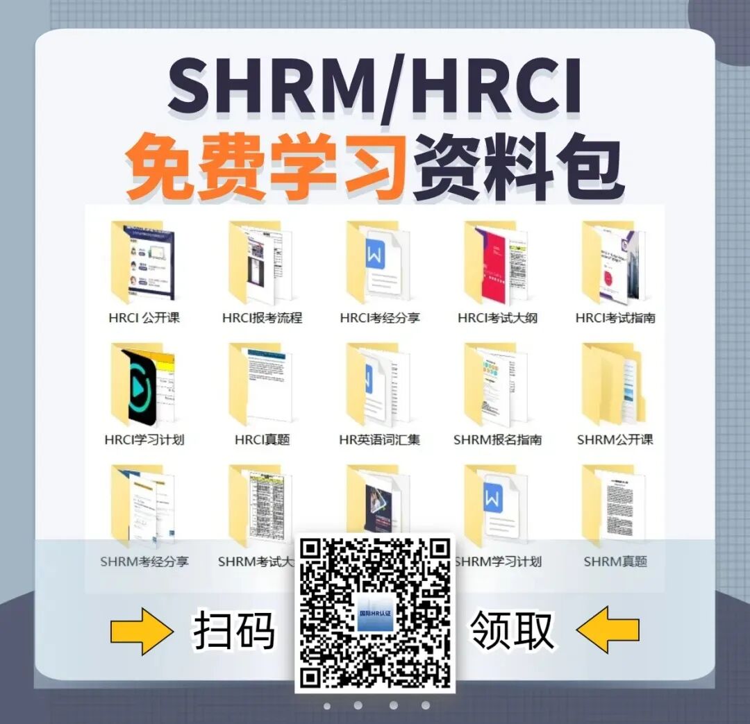 ♀️为了帮助大家顺利入门SHRM考试,小编特地准备了免费的SHRM备考精华资料(内含核心考点、模拟真题、学习指南、高分考经等),只需识别下方二维码即可领取SHRM备考锦囊。